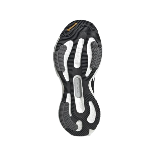 En la mediasuela encontramos lo más característico de la zapatilla: el Boost, material emblemático de Adidas, que proporciona una amortiguación excelente, aunque no se destaca por ser ligero o rápido. A pesar de ser una zapatilla bastante robusta, el Boost sigue ofreciendo una comodidad y protección excepcionales, lo que la convierte en una excelente opción para entrenamientos largos. Además, se mantiene la capa EVA sobre el Boost, la cual mejora la estabilidad y evita el desplazamiento lateral del pie, lo que resulta ideal para mantener el control durante el movimiento. El LEP 2.0 también sigue en la mediasuela, contribuyendo a la transición del pie con un toque de dinamismo, lo que mejora la sensación general al correr.