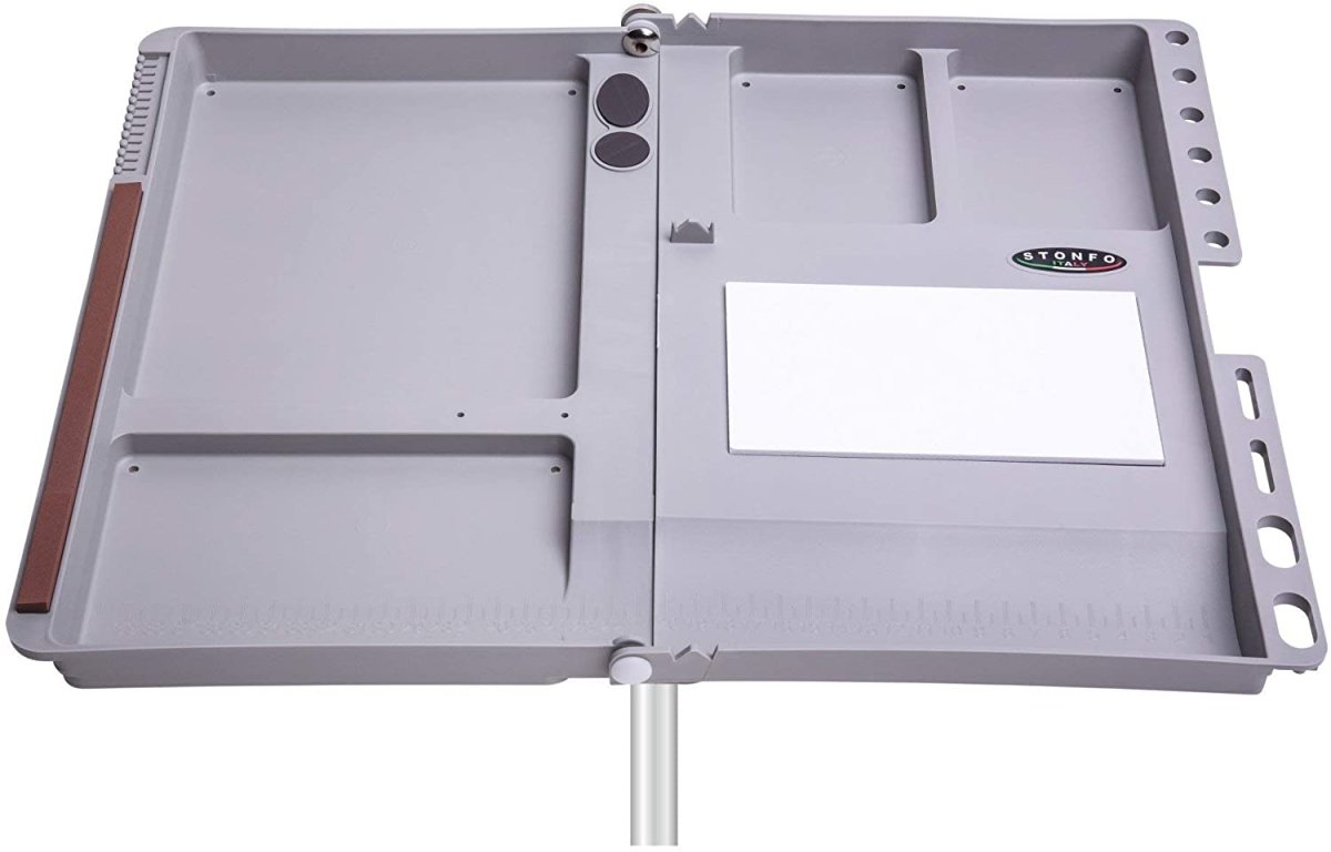 Bandeja plegable y ligera diseñada para cumplir varias necesidades que pudiera tener cada pescador. Tiene una estructura de material plastico muy resistente y muy bien acabado sin ningun angulo cortante . Muy bien distribuida con aujeros para la colocacion de varios utensilios asi pudieran ser tijeras, alicates desanzueladores entre otros, dos encajes para cajas de cebo, una tabla de cortar, un iman, tabla de medir, goma para encajar anzuelos y ganchos para bajos entre otros.