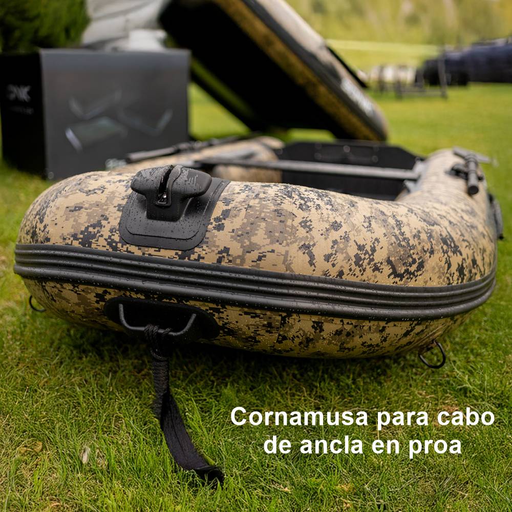 Fabricación de alta calidad que garantiza resistencia, estabilidad y seguridad en el agua. Estructura reforzada con paneles de PVC resistente en las zonas más expuestas al desgaste. Refuerzos adicionales en fondo y laterales para mayor protección frente a abrasión y rocas