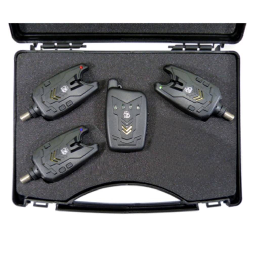 ARAPAIMA FISHING te trae el nuevo juego de alarmas EUROBITE de BEHR con gran alcance del receptor. Estamos seguros que son una de las mejores alarmas en cuanto a su relacion calidad/precio del mercado, no encontrará nada mejor a este precio. Testadas personalmente por el equipo de probadores de Arapaima Fishing. Las alarmas están equipadas con botones para ajustar la sensibilidad «S» y para ajustar el tono «T». Al presionar el botón «S» se ilumina más y la sensibilidad disminuye. La tecla de encendido funciona tambien como Volumen con toques cortos. Las alarmas funcionan con 1 pila de 9V (no incluida). El receptor está equipado con botones para ajustar el volumen «V» y para ajustar el tono «T».