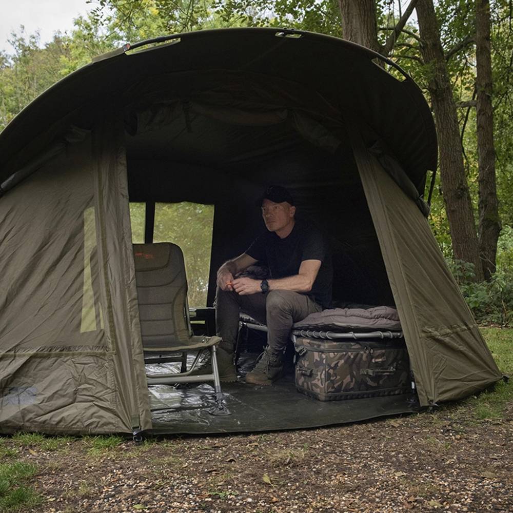 El panel frontal se puede enrollar para crear un refugio abierto por delante.