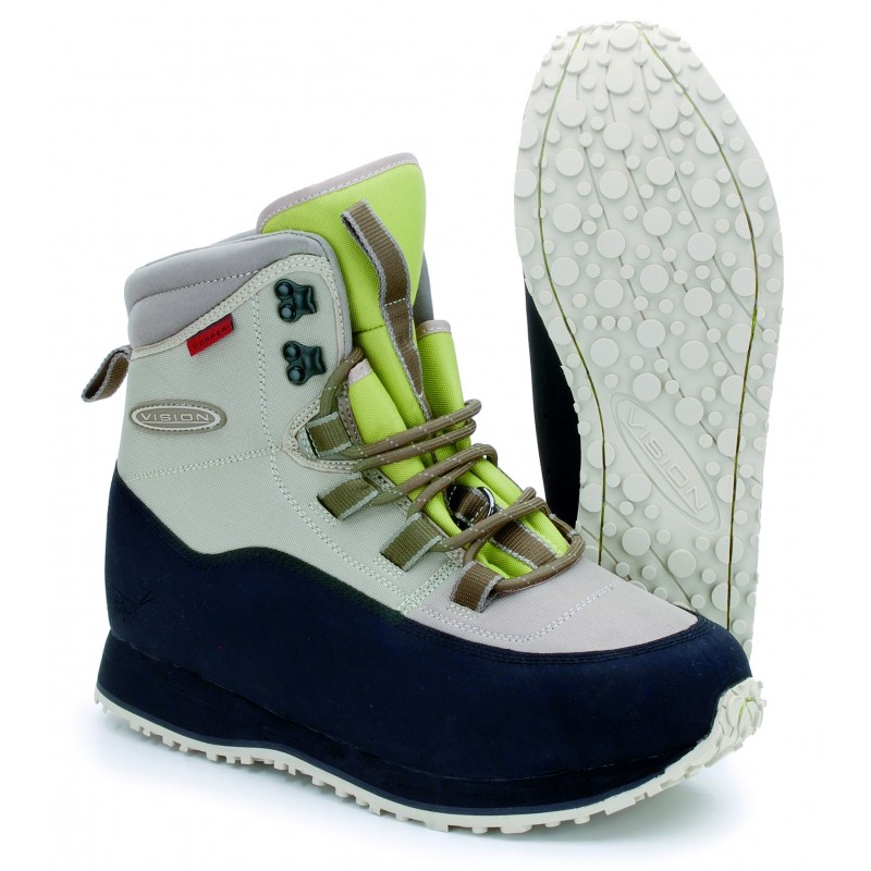 Fabricadas con refuerzo de goma y neopreno. Suela de EVA y goma, cordones de atado rápido y gran apertura de la lengüeta para facilitar la entrada del pie. Muy ligeras para aguantar toda la jornada de pesca sin cansarnos.