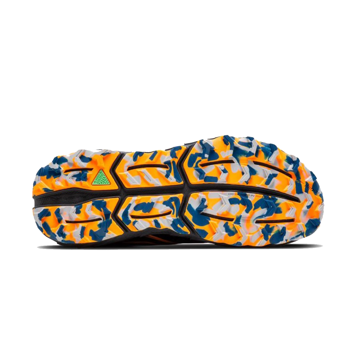 La suela de las Brooks Cascadia 18 mantiene el compuesto TrailTack Green, que incorpora un 25% de materiales reciclados, demostrando el compromiso de Brooks con la sostenibilidad. Este compuesto proporciona un excelente equilibrio entre rendimiento y durabilidad, apto para diversos tipos de terrenos gracias a su taqueado polivalente. La suela está dividida en distintas partes para facilitar la adaptabilidad al terreno y reducir el peso total de la zapatilla, permitiendo una transición más suave y eficiente durante la carrera.