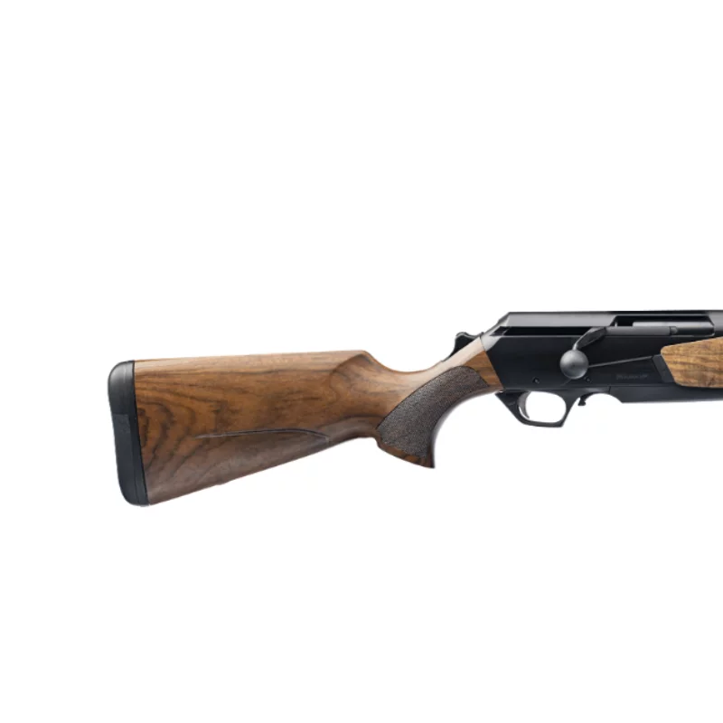 - Carcasa y Base Mecánica: La carcasa grabada en negro proporciona un aspecto elegante y distintivo al Browning Maral 4X Hunter. Su base mecánica robusta, con ensamblaje roscado del cañón en la carcasa, crea una interfaz más rígida. Este diseño, junto con una mayor superficie de apoyo y grosor de la madera de la culata, eleva la precisión y reduce el riesgo de rotura.