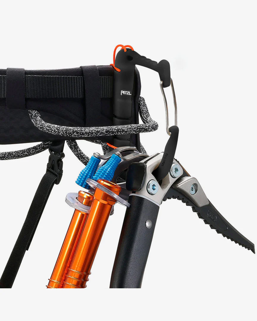 Permite organizar el material, guardar y escoger rápidamente los tornillos para hielo. También permite enganchar y desenganchar fácilmente un piolet o un martillo. Compatible con cualquier tipo de arnés, se pueden colocar los que necesites y en el lugar que elijas, según tu actividad