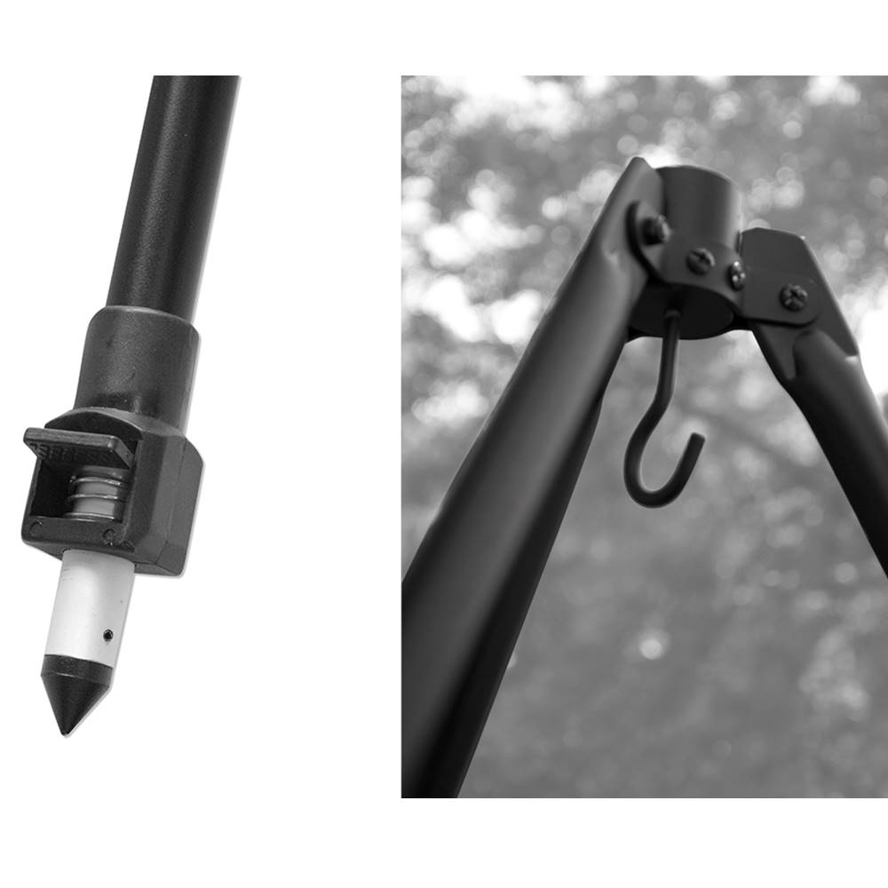 Muy estable. Patas telescópicas para almacenamiento. Dimensiones abiertas: 144×127 cm.