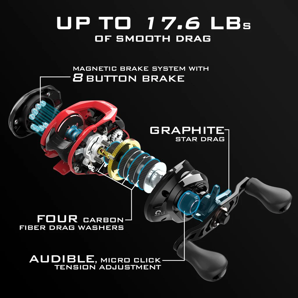 - Diseño: Low-Profile, Baitcasting