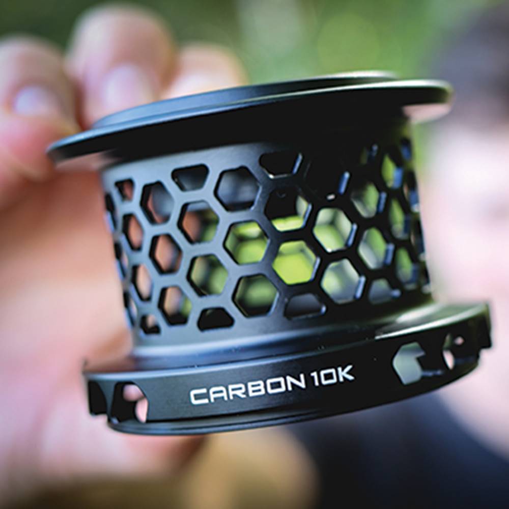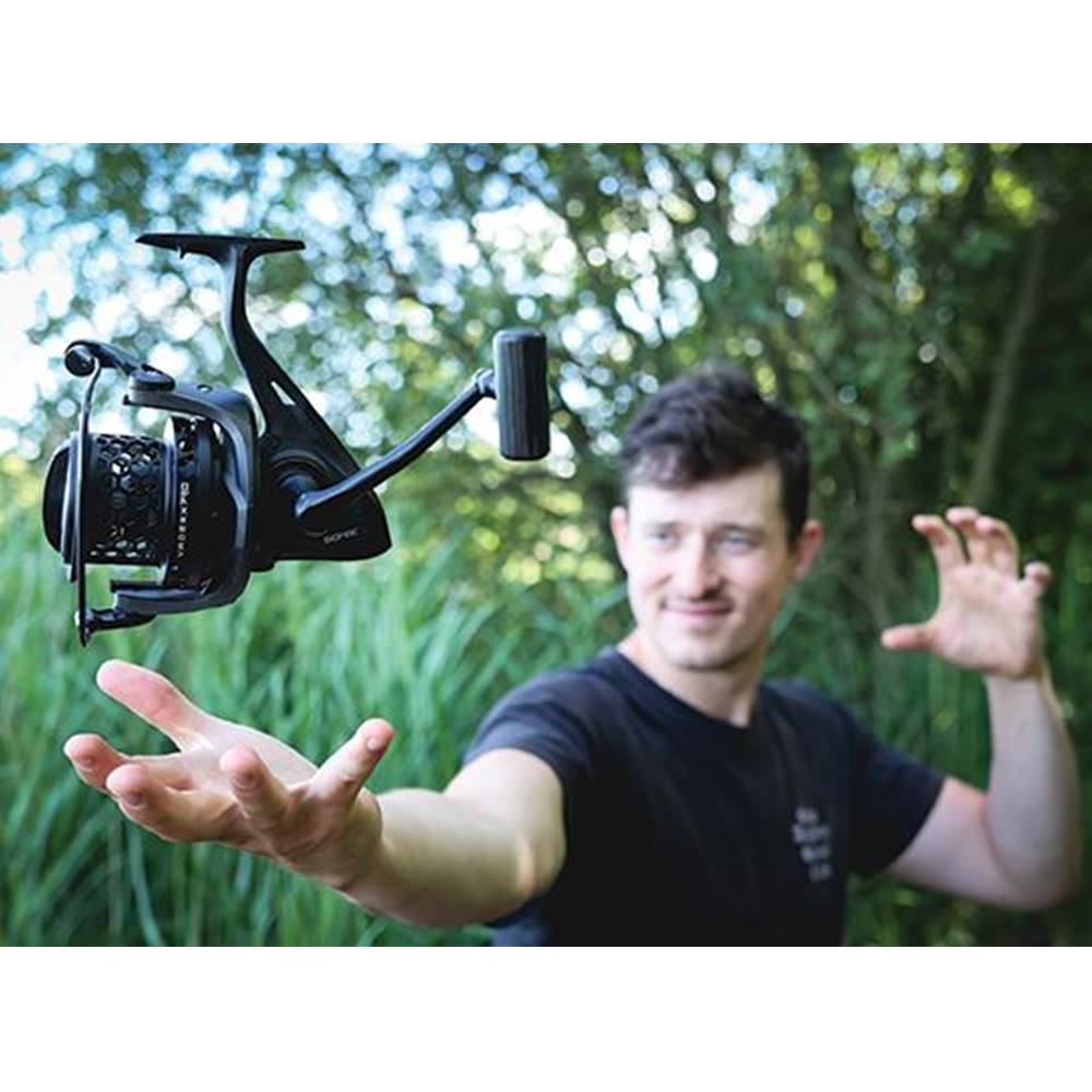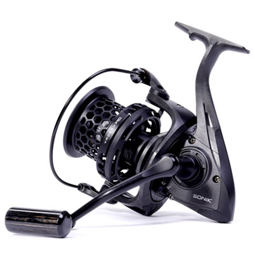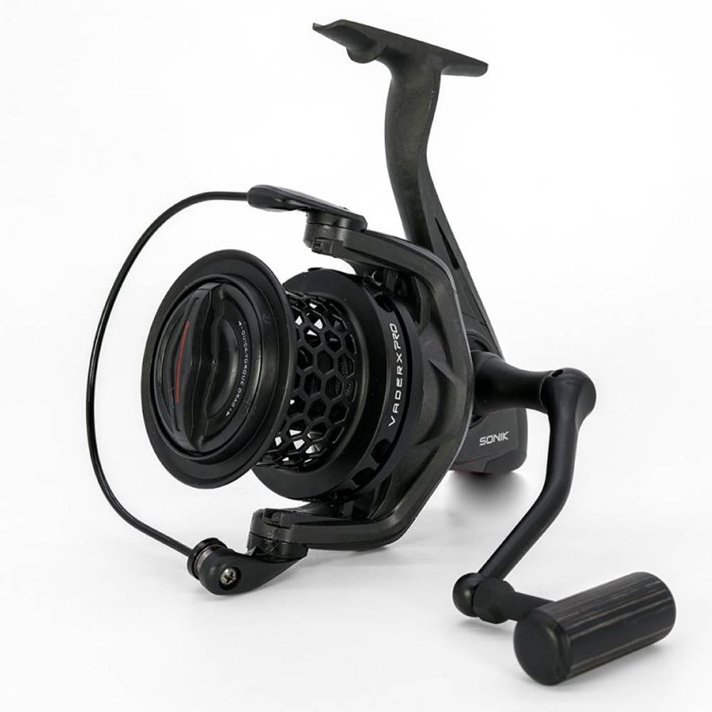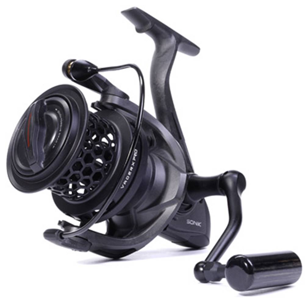 El VaderX Pro Carbon 10000 es un carrete ultraligero de larga distancia que le acompañará en todas sus pescas. Se ha trabajado mucho en el diseño y la ligereza de este carrete, de hecho, su cuerpo, su rotor y su bobina son de carbono, lo que reduce drásticamente el peso de éste (sólo 510g en la báscula). Además, la bobina está perforada para darle un aspecto moderno. El arrastre delantero Quick-Torque de carbono le proporciona un control total y precisión en sus combates, y con la gran bobina podrá pescar a muy larga distancia.