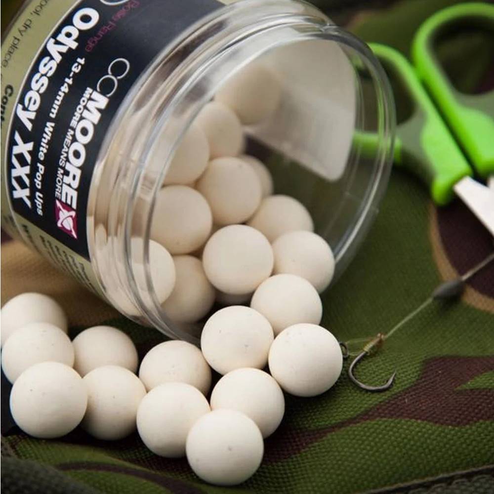 CC de Moore, que es una muy blanca brillantecon un boilie flotante.El promedio mucho mayor flotabilidad del pop, la estructura más firme y durabilidad única en comparación con otros pop ups.No sólo es fuerte, aroma mariscos, sino también visualmente que fomenta la inclusión de la carpa nutricional. Perfecta armonía con los boilies Odyssey XXX hunde combinación con el muñeco de nieve, a menos que se utiliza solo Chod Rig y bisagras Rig rígido montado efecto del tratamiento es simplemente incuestionable.Durante todo el año se puede utilizar con éxito.Se conserva la flotabilidad de más de 24 horas.razón Állagánál resiste. Característica especial es que contiene los mismos líquidos como atractores boilies Odyssey XXX listos. Contine unas 35 unidades de 13 y 14 mm de diámetro en cada bote.