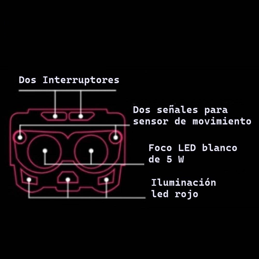 Lampara frontal híbrida: puede ser recargable de 10W o funiconar con 3 pilas AAA. Ademas cuenta con encendido por sensor de movimiento.