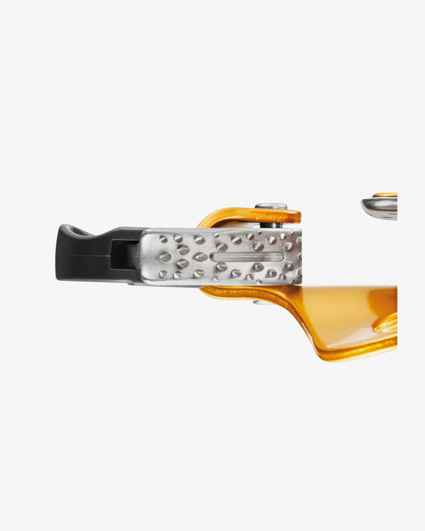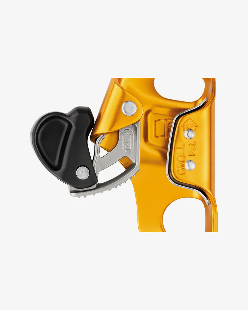 Diseñado para los ascensos por cuerda, el bloqueador ventral Croll S es ligero y fácil de utilizar. Los orificios de conexión aseguran una sujeción eficaz durante los ascensos. La placa de protección, de acero inoxidable, mejora la resistencia al desgaste protegiendo la zona de rozamiento de la cuerda.