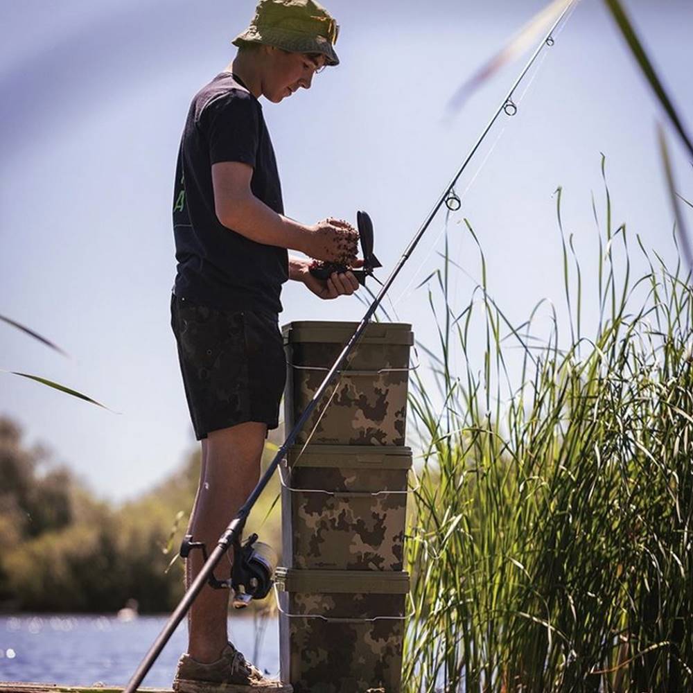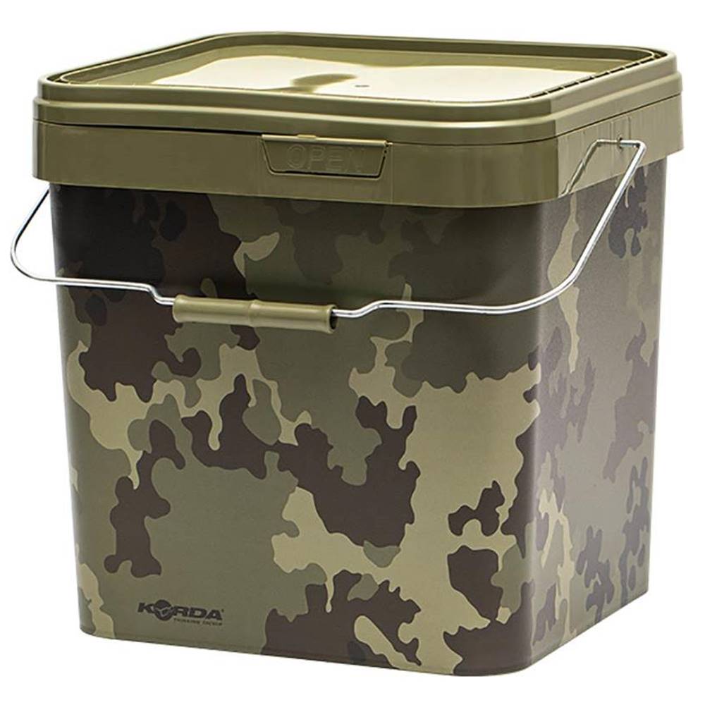 Diseño robusto con mango de metal resistente Perfecto para llevar a su cebo hacia y desde un lugar Forma cuadrada hace que sean más fáciles de apilar y también almacenan en coche y en carretilla Diseñado en patrón único Korda Camo Disponible en tres tamaños – 5- litros, 10 litros y 17 litros