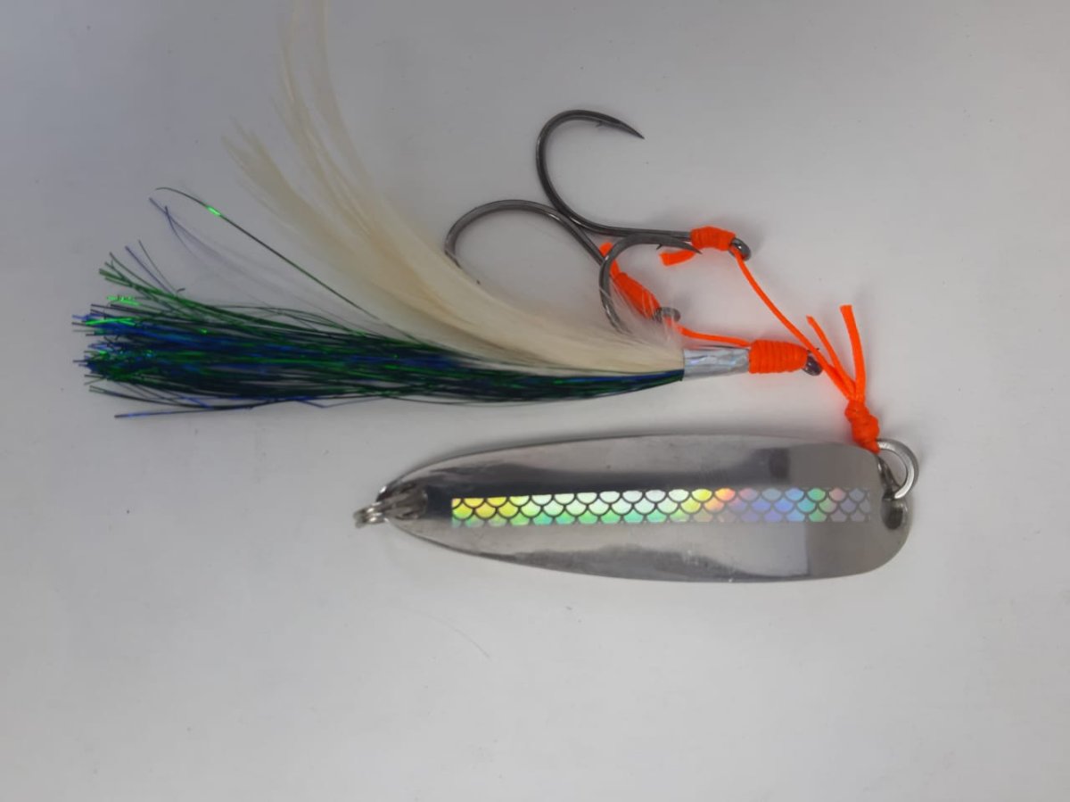 Cuchara Acero Inoxidable y una armada triple con plumas, las mejores para todos los peces predadores