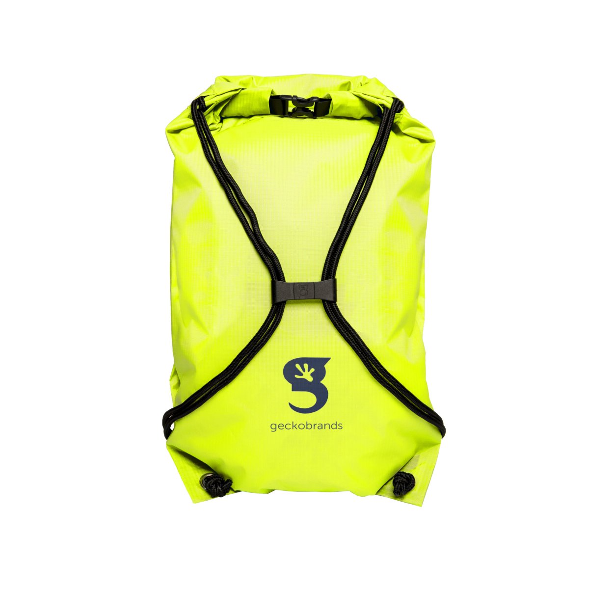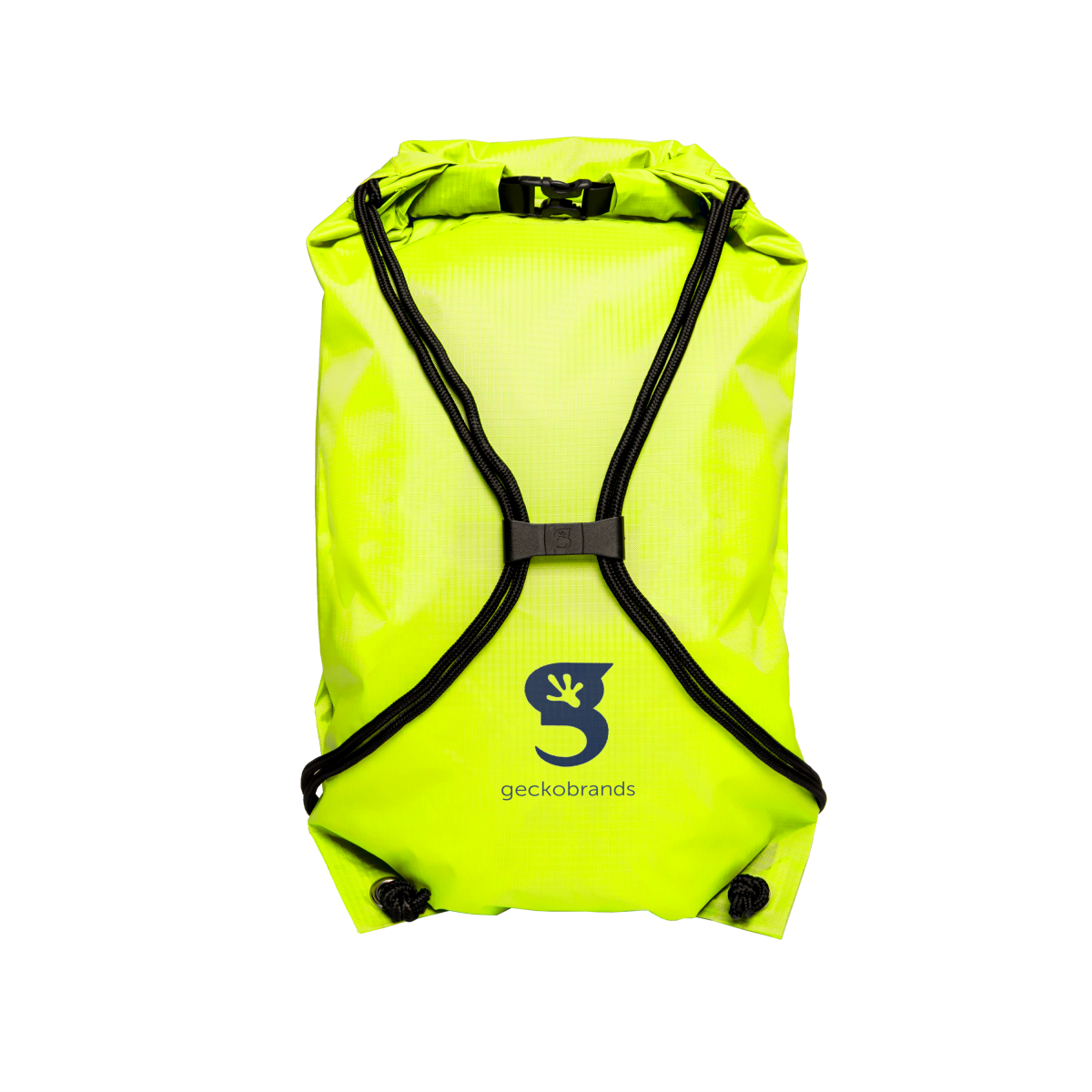 La mochila Drawstring WP Backpack – Bright Green / Navy perfecta para la lluvia, actividades de agua ligera, playa o nieve. Pesa solo 0,4 libras y se pliega en la palma de la mano.