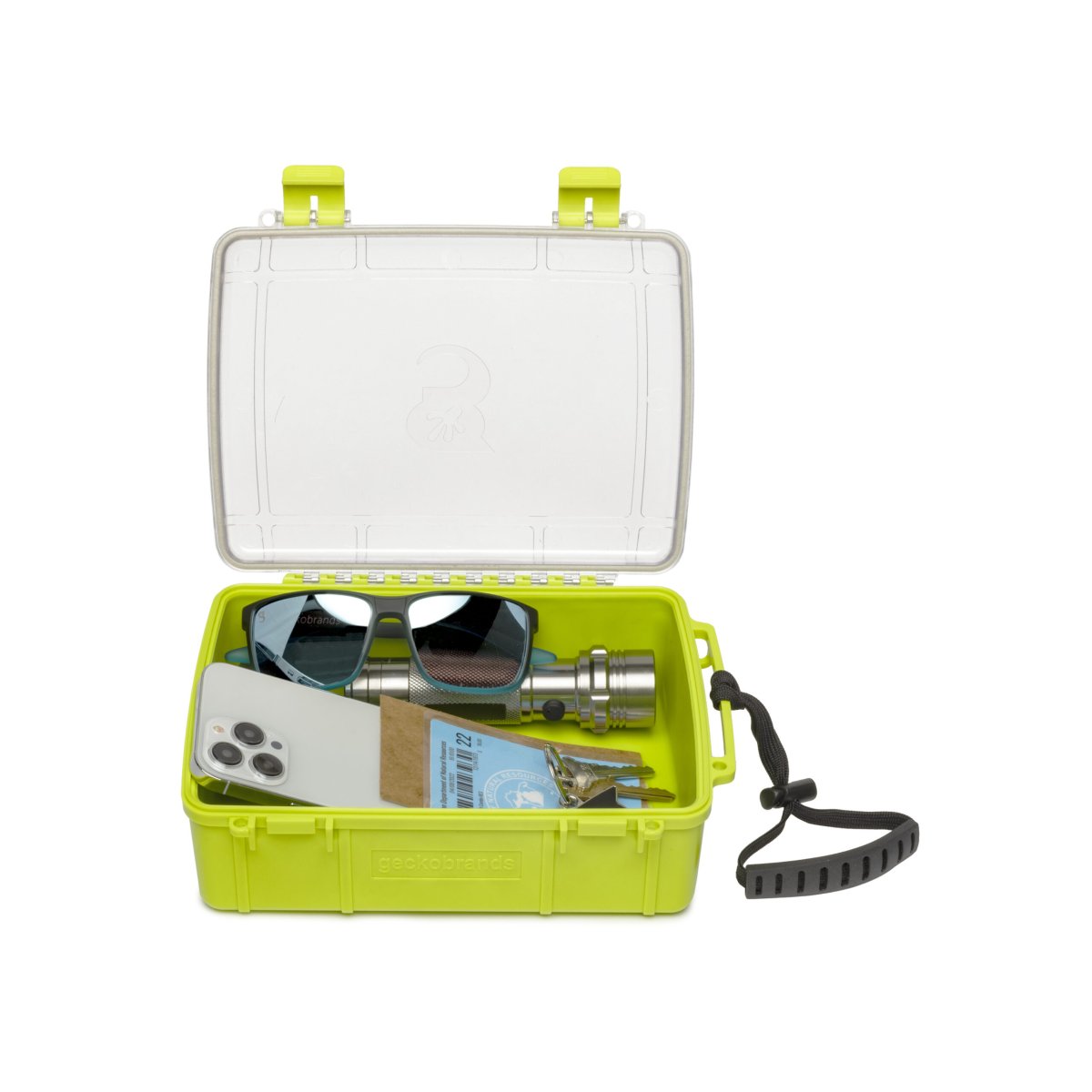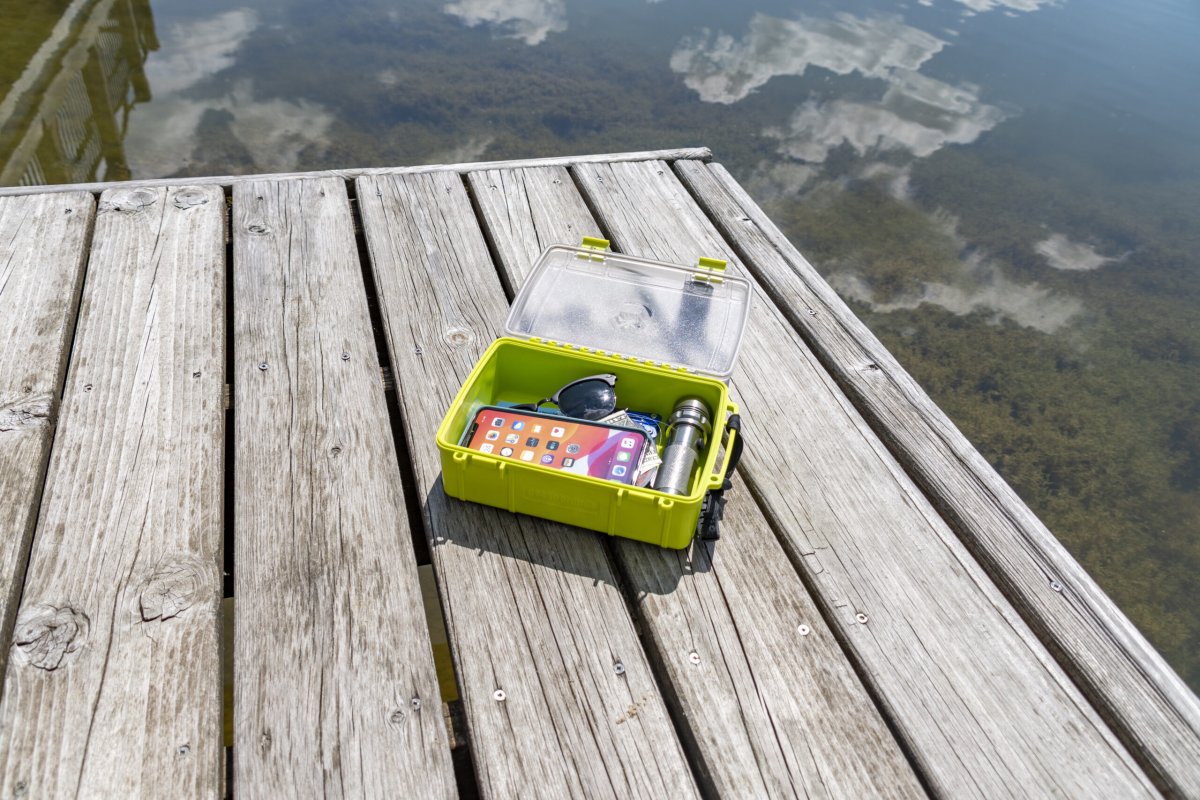 Proteja su equipo en la caja hermética, a prueba de polvo y a prueba de golpes. El forro de silicona ofrece cuidado adicional para su teléfono y el tamaño es óptimo para sus llaves, licencias y otros objetos de valor pequeños. Incluye un sistema de doble pestillo para garantizar un cierre seguro.