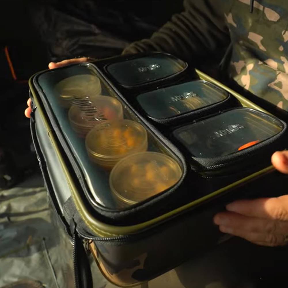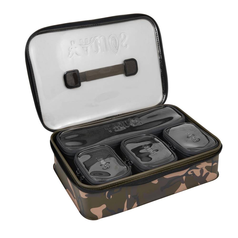 Sistema de bolso de EVA resistente al agua y al desgaste Se suministra con cuatro bolsos de accesorios de color caqui Ideal para llevar múltiples elementos esenciales como tackle, PVA, plomos, mezclas de picas, etc.