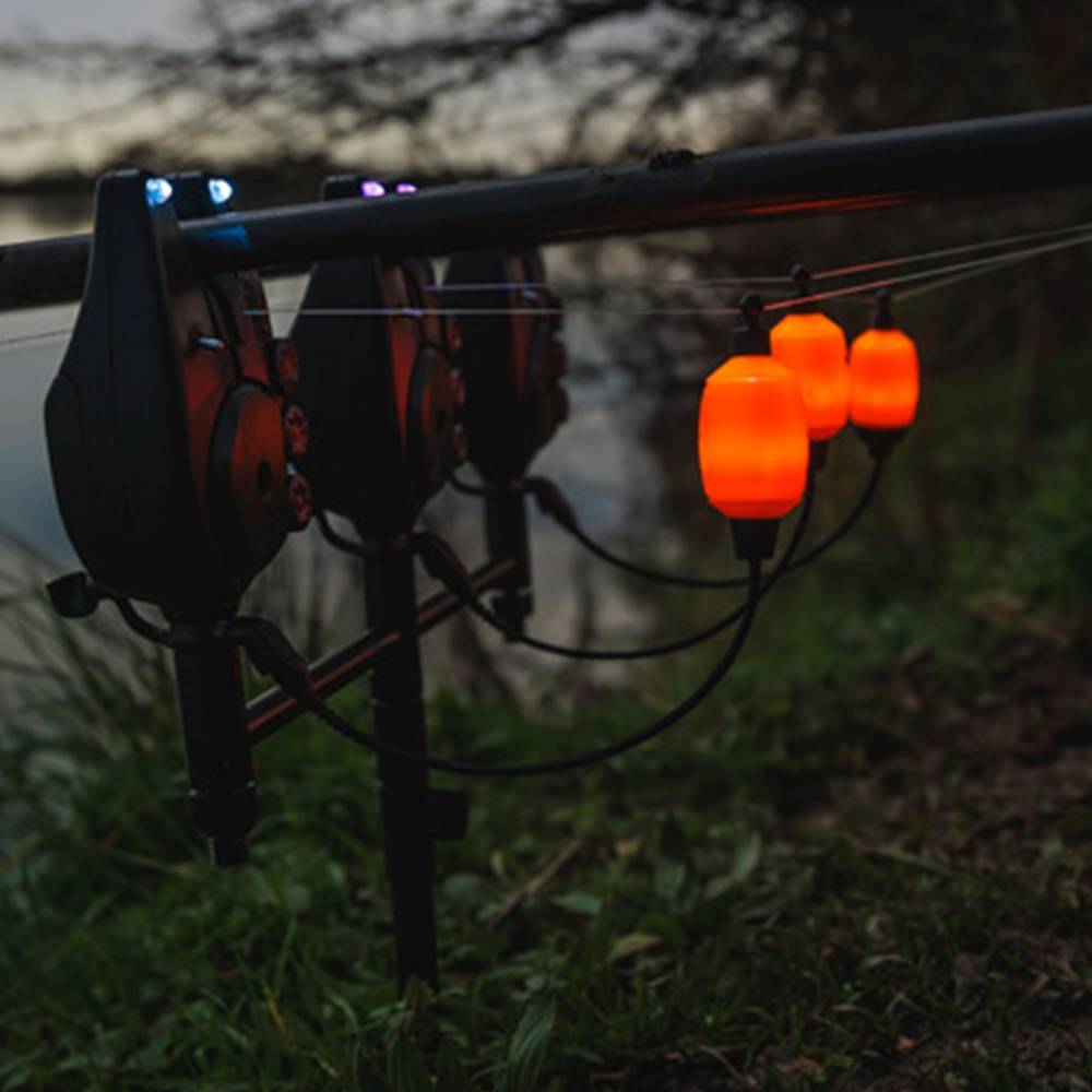 El cabezal del colgador se ilumina gracias a una conexión directa a la alarma de picada. Es compatible con la mayoría de las alarmas de picada con conector de 2,5 mm.