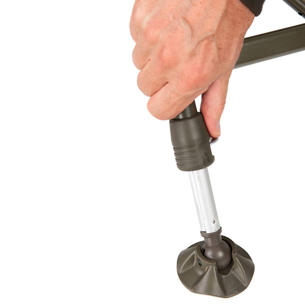 - Seis patas extensibles con pies de barro giratorios para terrenos irregulares.