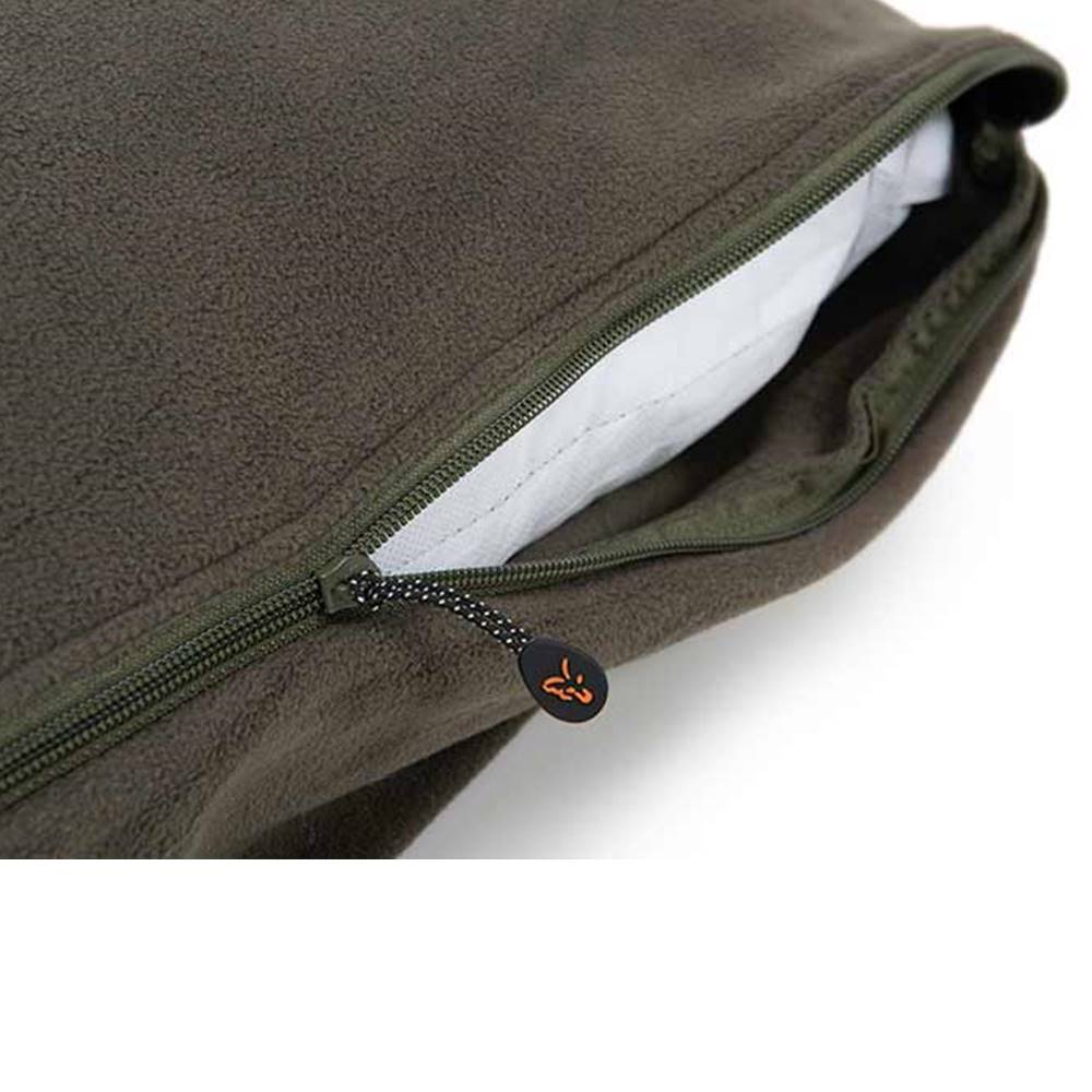 Almohada de micropolar. Verde caqui. Funda extraíble lavable a máquina. Dimensiones 65cm x 40cm