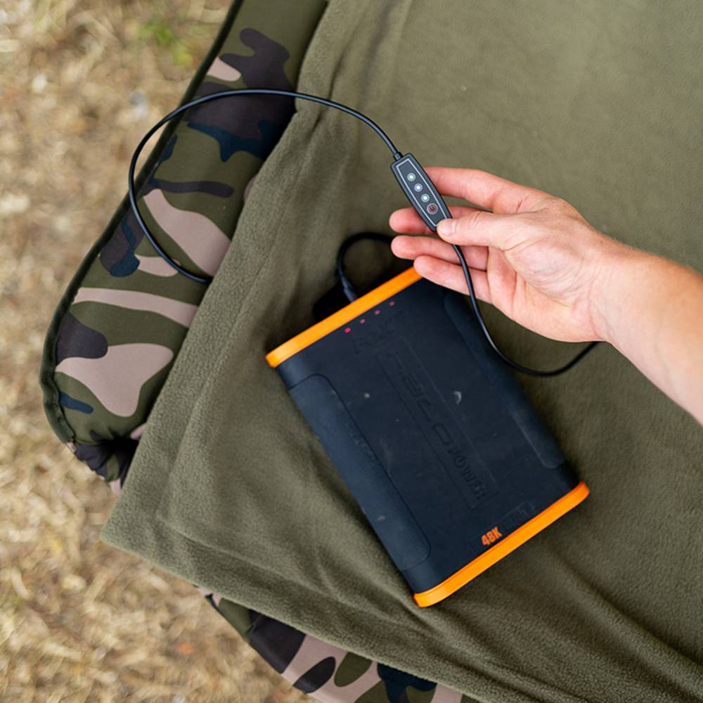 - El botón de control se encuentra en el cable a 50 cm de la parte superior central de la manta con un conector USB-C a 60 cm del botón de control.
