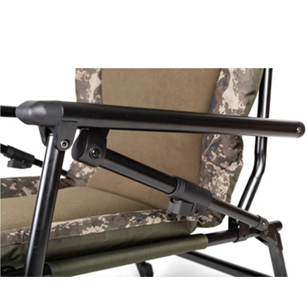 Con palancas de bloqueo de resorte a cada lado de la silla, desengancharlas le permite empujar hacia atrás o permitir que la sección de la cabeza de la silla se tire hacia adelante antes de volver a engancharlas para establecer la posición de inclinación del asiento, al igual que un asiento de avión. Al igual que el avance del anti-retroceso infinito en los carretes, el resultado es un ajuste a niveles mínimos y un bloqueo más sólido que nunca antes posible.
