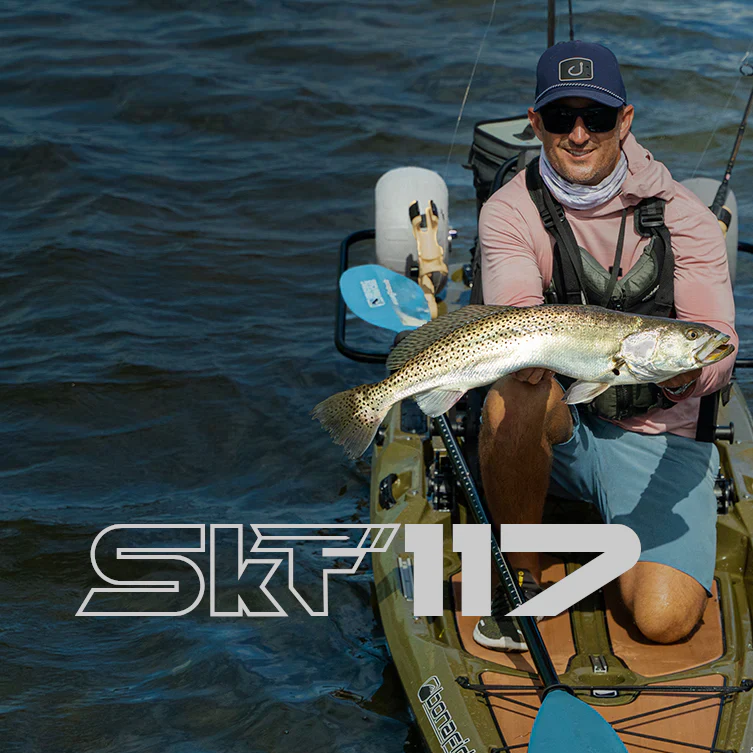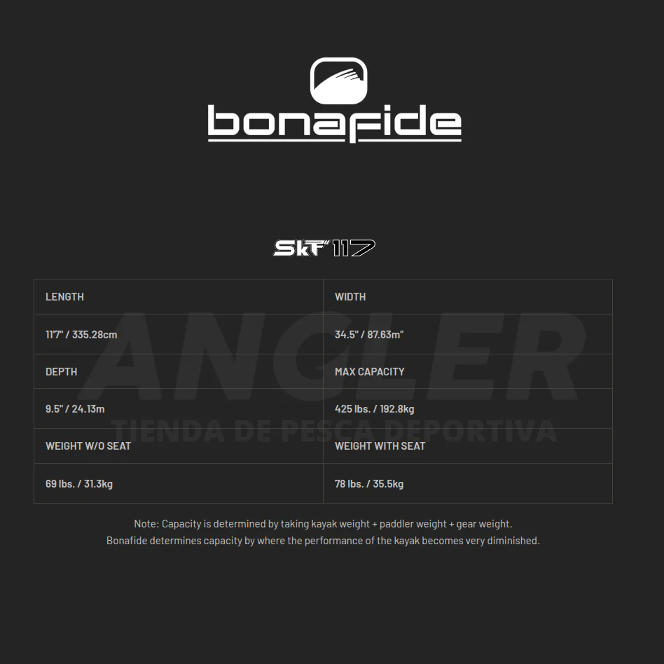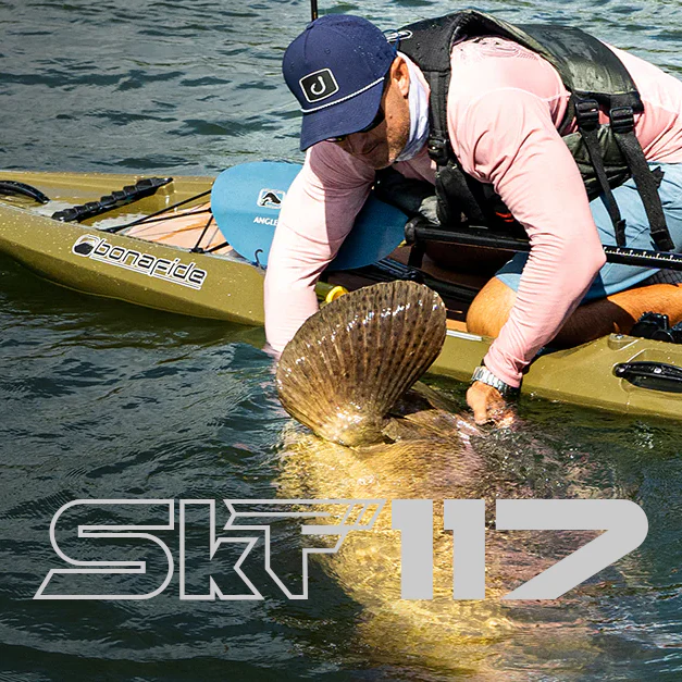 Diseñado para navegar sigiloso a remo en esteros, ríos caudalosos y lagunas, Bonafide SKF117 es un kayak con una cubierta amplia y despejada, inspirado en skiffs y paddleboards.