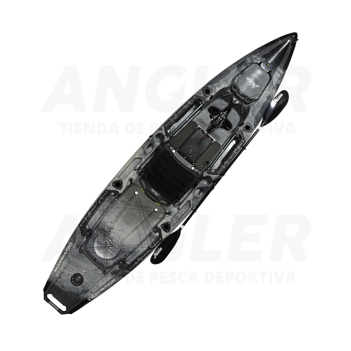 Mirage Outback mide casi 13 pies (3.89m) de longitud e incorpora asiento Hobie Vantage Seat maximizando el confort y adaptabilidad a múltiples condiciones de pesca en aguas continentales o costeras.