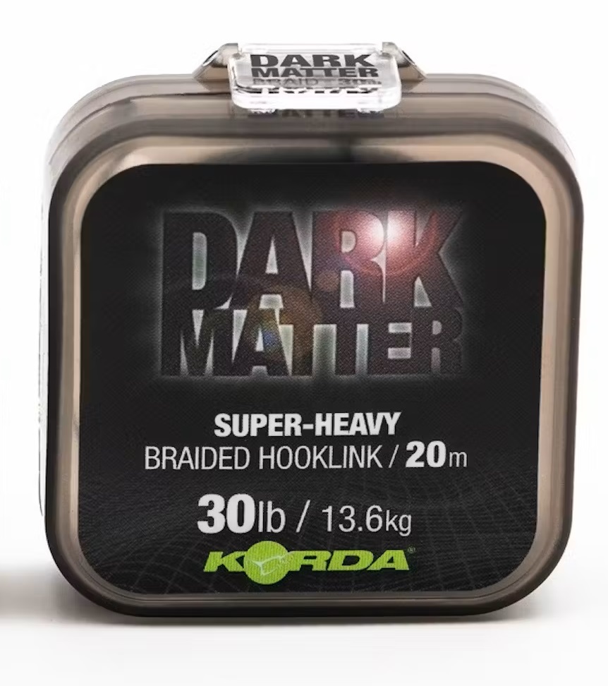 Este material trenzado superflexible se hunde increíblemente bien, ya que se adapta al fondo, lo que dificulta su detección por parte de las carpas. Sus fibras son muy resistentes y están firmemente tejidas, lo que dificulta su desprendimiento, facilitando un corte limpio y un enhebrado limpio por el ojo del anzuelo al hacer un nudo sin nudos. Está compuesto por una mezcla de fibras verdes y de color limo, así que asegúrese de que se integre bien con cualquier tipo de fondo. Es una excelente opción para pescar con bolsas de PVA Solidz, pero también es compatible con muchos otros aparejos. Dark Matter Braid viene en una bobina de 20 m y una selección de resistencias de 15 lb, 20 lb o 30 lb.