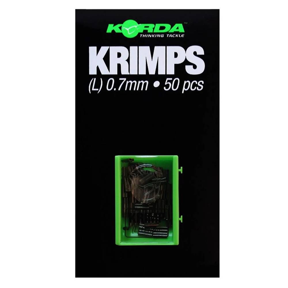 Cajita de 50 Grapas KRIMPS para colocar en los fluorocarbonos rigidos y semirigidos de montajes CHOD y Puentes de linea de hasta 0,65 mm de grosor. El Krimps (GRAPA) y herramienta Krimp han sido diseñados para permitir la construcción de plataforma fácil con materiales rígidos (especialemnet indicado para los fluorocarbonos Hybrid Stiff, Mouth Trap and BOOM). En particular, estamos muy entusiasmados con el potencial de crear Puentes y para plataformas CHOD.No sólo esto, pero utilizando Krimps le permitirá crear plataformas Chod que son exactamente la misma longitud cada uno y cada vez. Hay dos tamaños de Krimp disponibles, que han sido diseñados para adaptarse a diferentes materiales. El más pequeño (0,60 mm) se adapte a los materiales de cerdas tiesas como Mouth Trap y stiff coated braids, y tambien con el Hybrid Stiff, y el más grande (0,70 mm) es perfecto para materiales muy gruesos (como 30lb plus mono o el 35lb BOOM). No usar con el KORDA IQ Fluorocarbon.