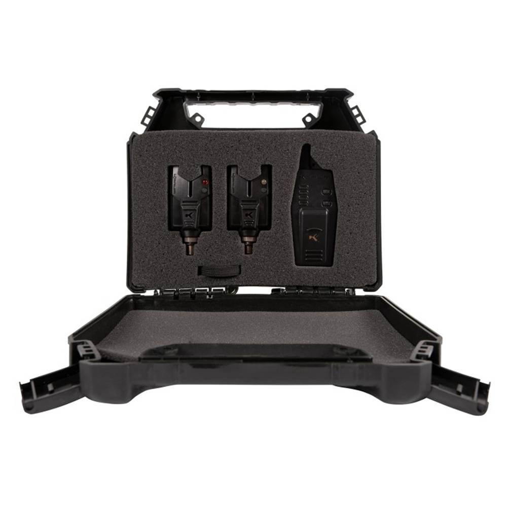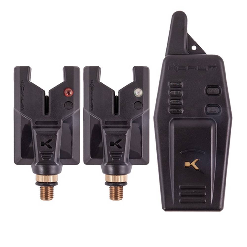 El set de presentación compacto Korum KBI para 2 cañas incluye un par de alarmas de picada ultrarresistentes en un cuerpo pequeño y resistente con receptor inalámbrico. Una opción fantástica para todo tipo de pesca de ejemplares.