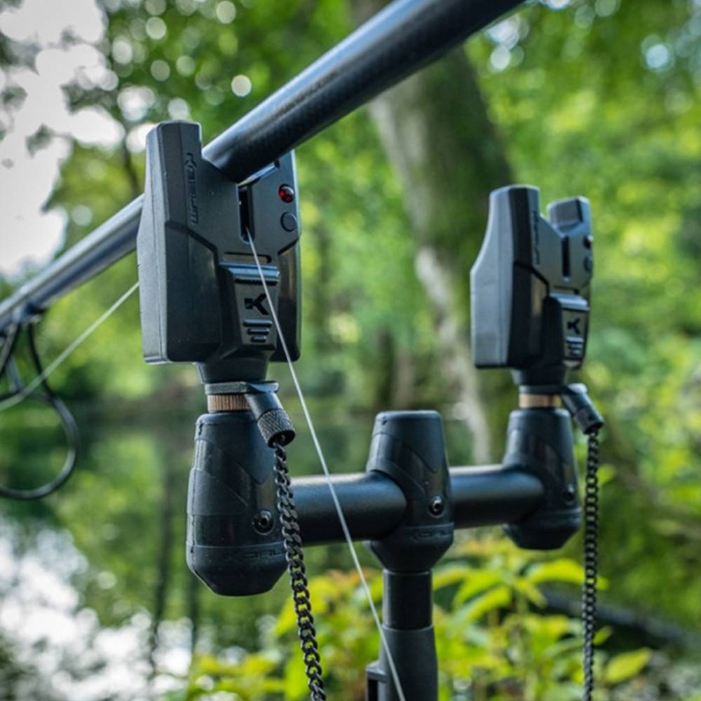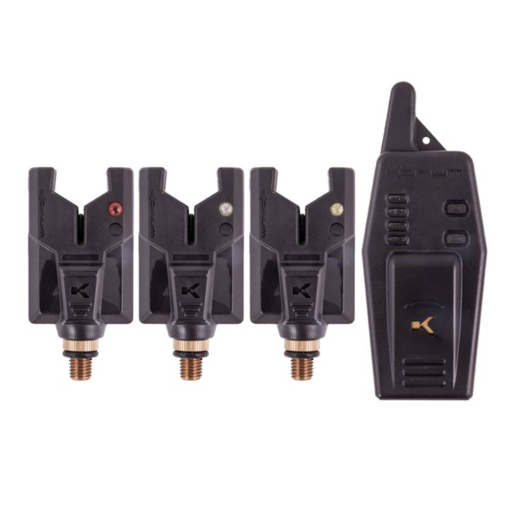 El set de presentación compacto Korum KBI para 3 cañas incluye un par de alarmas de picada ultrarresistentes en un cuerpo pequeño y resistente con receptor inalámbrico. Una opción fantástica para todo tipo de pesca de ejemplares.
