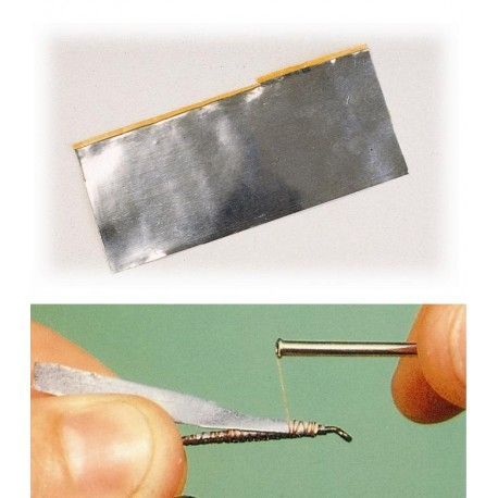 Fina lámina de plomo adhesivo, fácilmente recortable, para cortar en tiras del ancho que precisemos en cada montaje.