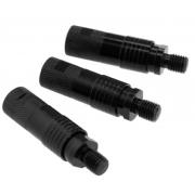 Adaptador de alta calidad, llamado conector rápido, que ayuda a conectar rápidamente las alarmas electrónicas de cebo a las vainas y los soportes de las cañas. Conjunto de tres piezas acabadas en diseño clásico negro.