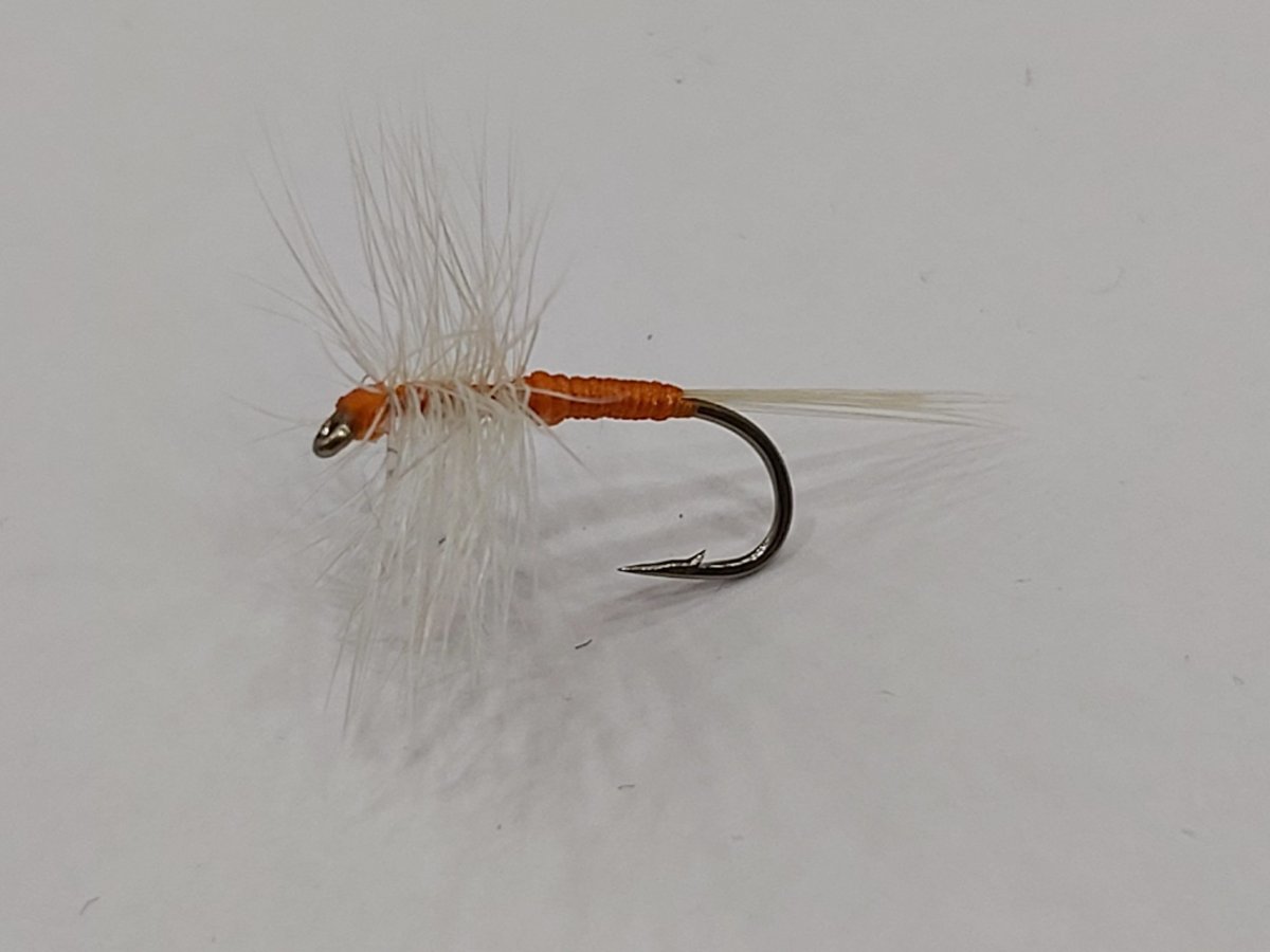 Mosca montada con los mejores materiales; pluma hoffman, cuerpo Naranja y montada en un anzuelo numero 14.