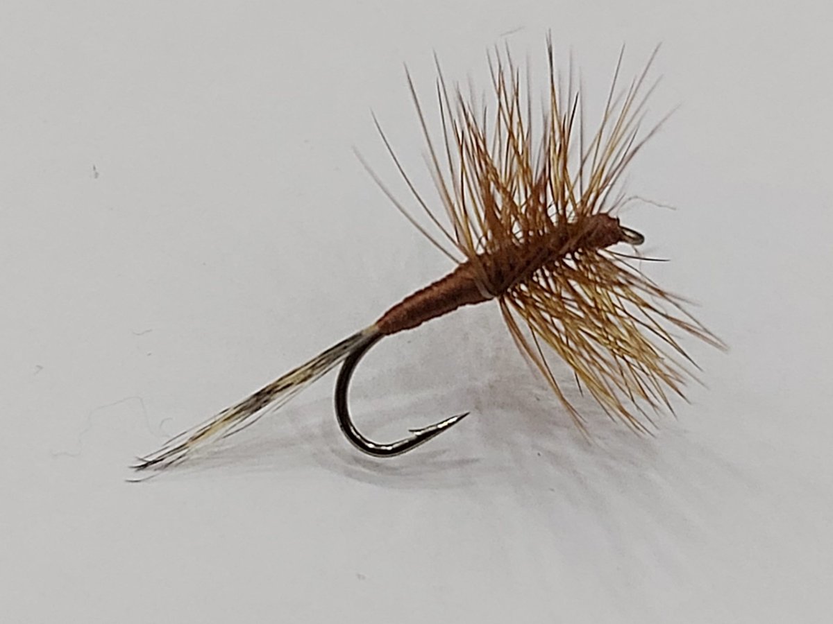 Mosca montada con los mejores materiales; pluma hoffman, cuerpo Tabaco y montada en un anzuelo numero 14.