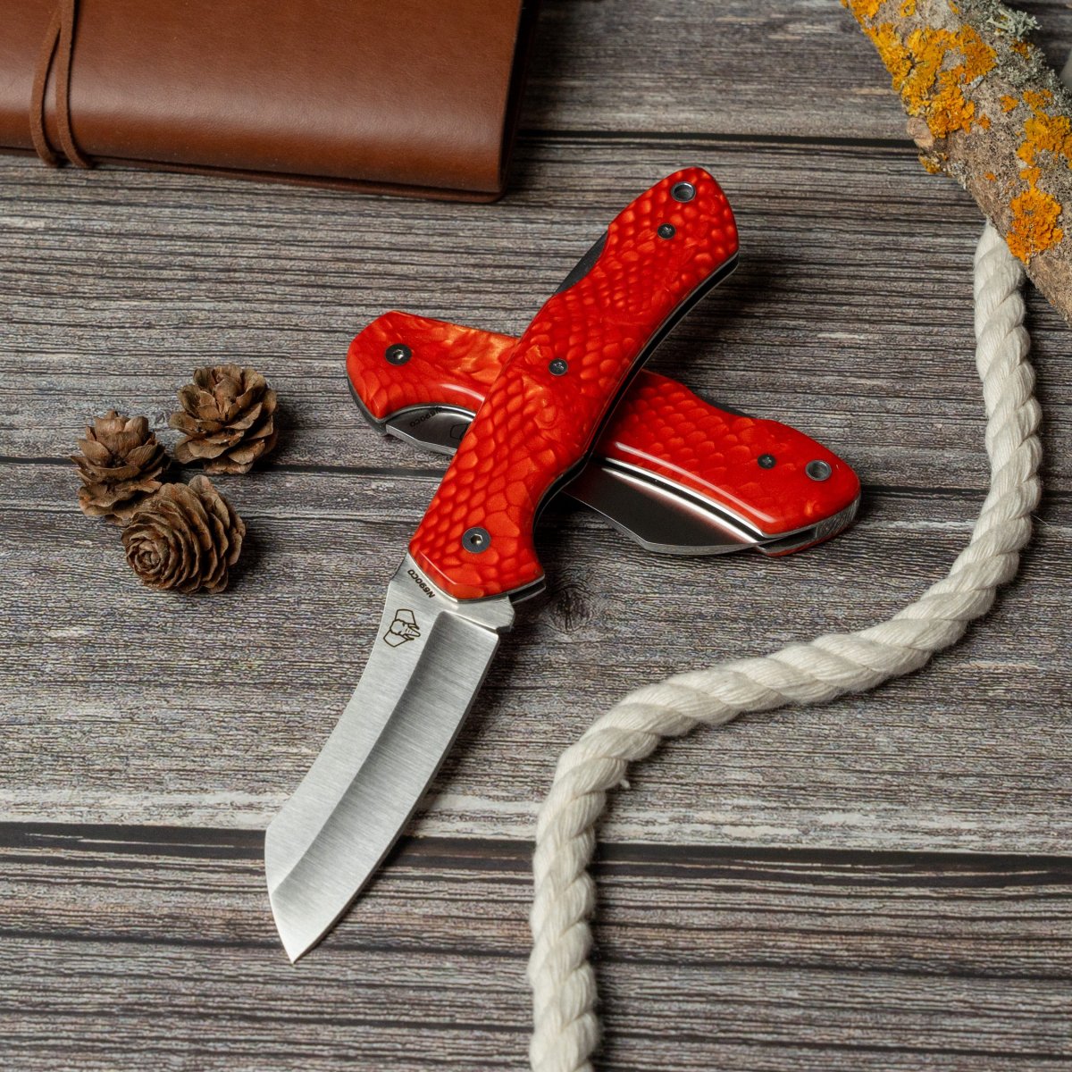 La navaja Cudeman Tundra esta fabricada con mango Juma de color rojo pulido y con acero N690Co con seguro en la parte posterior y un acabado pulido excelente.