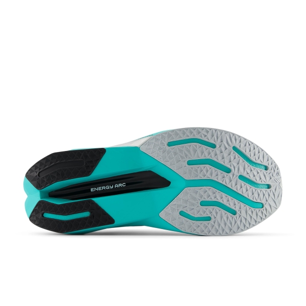 La suela de la SuperComp Trainer v3 ha sido rediseñada para mejorar la protección y la transición. A diferencia de la versión anterior, la placa de fibra de carbono ahora está completamente cubierta en la zona delantera por la espuma Fuelcell, lo que proporciona mayor protección y una transición más suave. El caucho de la suela ha sido reconfigurado para ofrecer mejor tracción y durabilidad, adaptándose a una variedad de superficies.