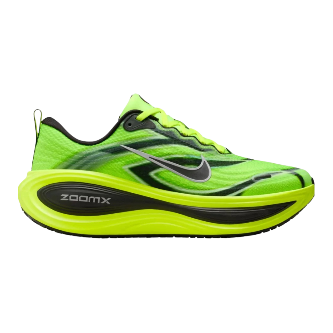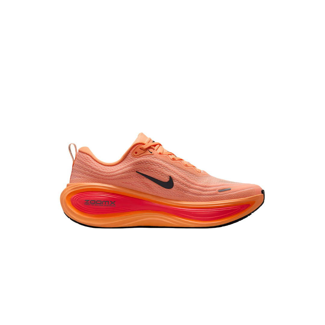El gran salto de la Vomero Plus respecto al modelo anterior (Vomero 18) es la entresuela íntegramente fabricada en ZoomX Foam, la espuma más reactiva de Nike. Aporta una sensación sorprendente de suavidad, retorno de energía (hasta un 85 %) y una pisada más ligera y receptiva que cualquier otra zapatilla de entrenamiento diario. Con 45 mm de altura en el talón (y 35 mm en el antepié, drop de 10 mm), ofrece una amortiguación generosa pero sorprendentemente ágil y estable. Runners profesionales como Conner Mantz han destacado cómo ésta amortiguación “max cushion” reduce el impacto en las piernas, promoviendo una recuperación más rápida y evitando fatiga.