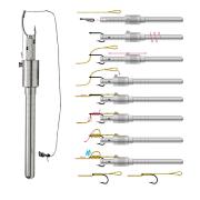 Una herramienta diseñada para ayudar a montar el hair en el anzuelo, dejandolo siempre a la misma distancia. Este pequeño dispositivo inteligente tipo torno donde se fija el anzuelo en un extremo y se engancha el trenzado que actuara de hair en el pivote del lado, dejandolo fijo y a la misma distancia todas las veces.