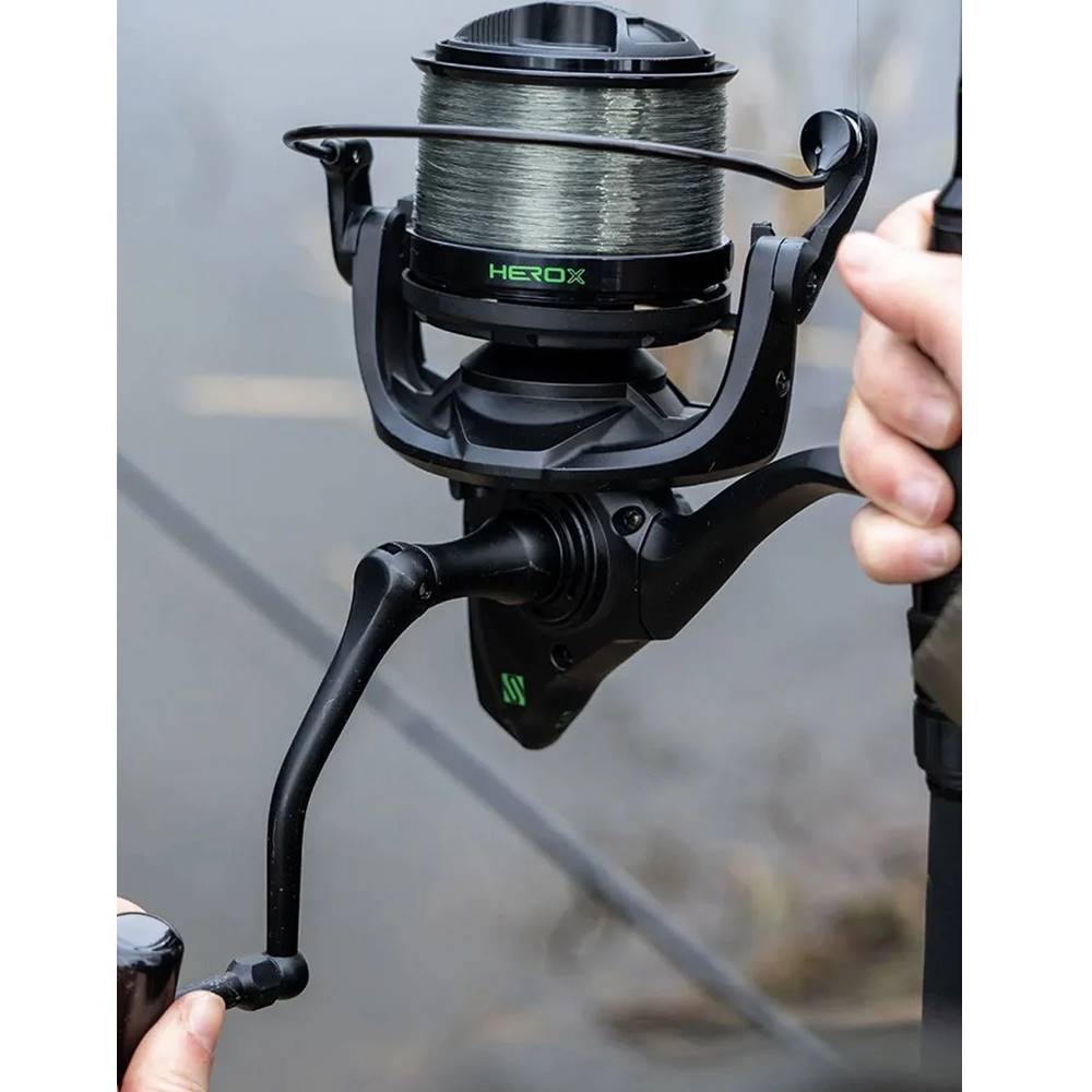 HEROX es una gama de carretes elegantes, robustos y de alta capacidad diseñados para que el pescador de carpas y el pescador especializado pueda afrontar todas las condiciones. Fabricado con altas especificaciones y con una transmisión helicoidal ultrasuave. Nuestro equipo Heli Coil proporciona una cama de línea ultraplana para un rendimiento de lanzamiento suave y una colocación de línea impecable. Construido con grafito liviano; El cuerpo y el rotor incorporan un protector de línea de rotor flotante, que ayuda a evitar enredos.