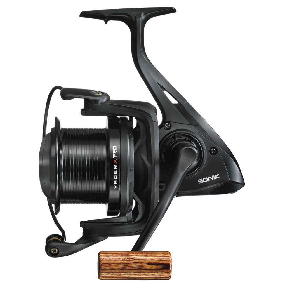 Sonik VaderX Pro 10000 El VaderX Pro 10000 es un robusto carrete de larga distancia que le permitirá superar las duras condiciones de la pesca de la carpa. Bobinado en cruz, rueda de control infinito, rotor anti-enredos y carrete de aluminio, tiene de todo lo que está hecho un buen carrete. Es ligero en comparación con su tamaño, además, su recuperación es rápida con 1 m por vuelta. Su potente freno rápido (Quick torque drag) es un aliado para mantener el control durante la pelea con una carpa.