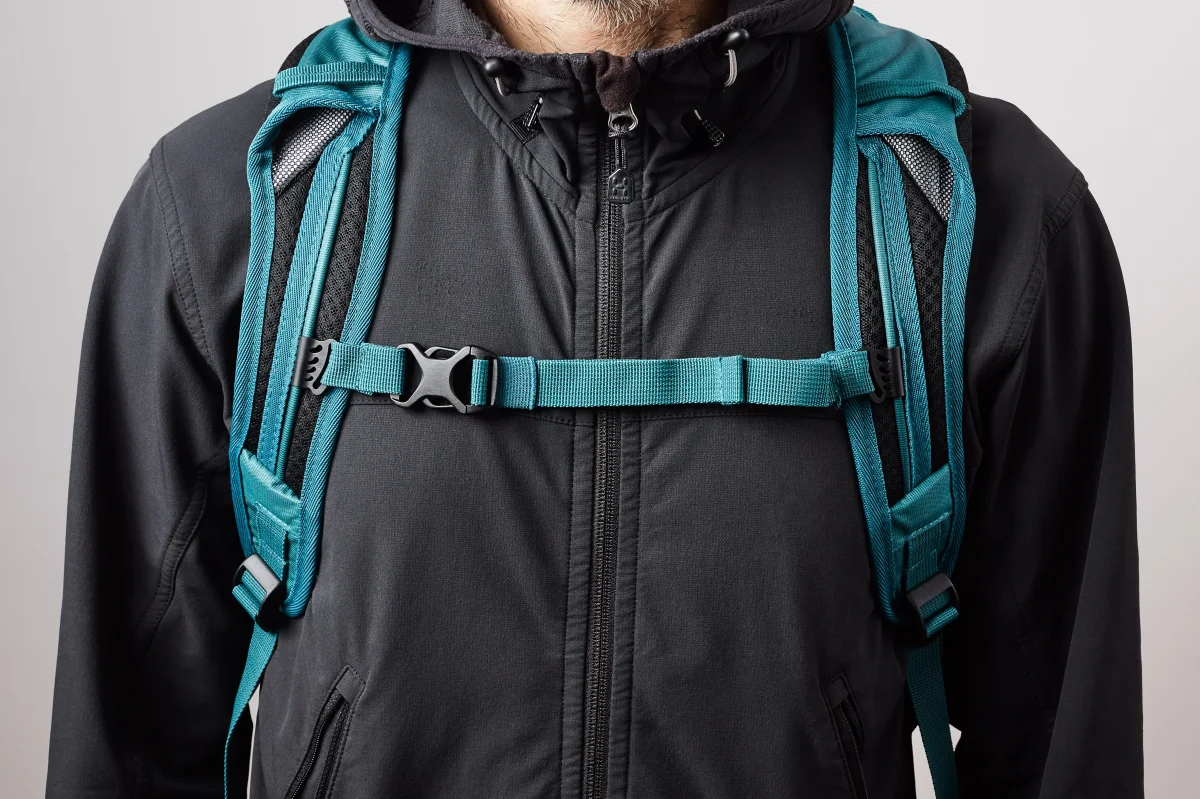 Tensor de pecho, silbato de emergencia, cintas compresión lateral, bolsillos laterales, riñonera con bolsillos, acceso hydrobag, modelo unisex.