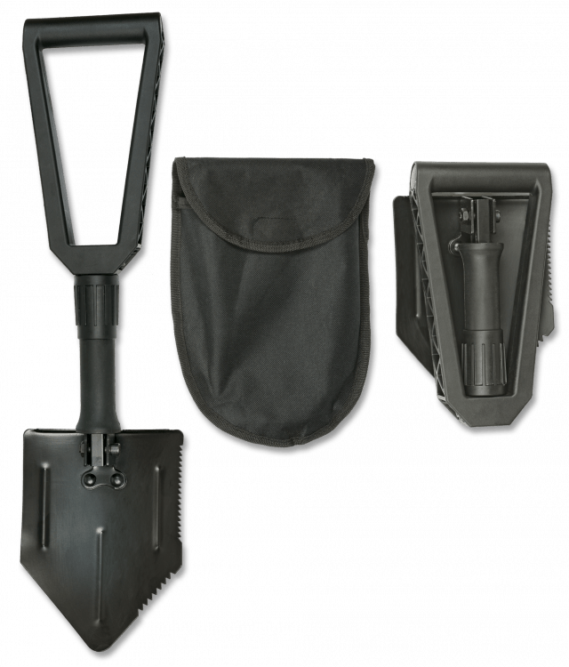 Pala Supervivencia, plegable, negra con medidas 58 cm x 15 cm / Pala 21cm x 15 cm.
