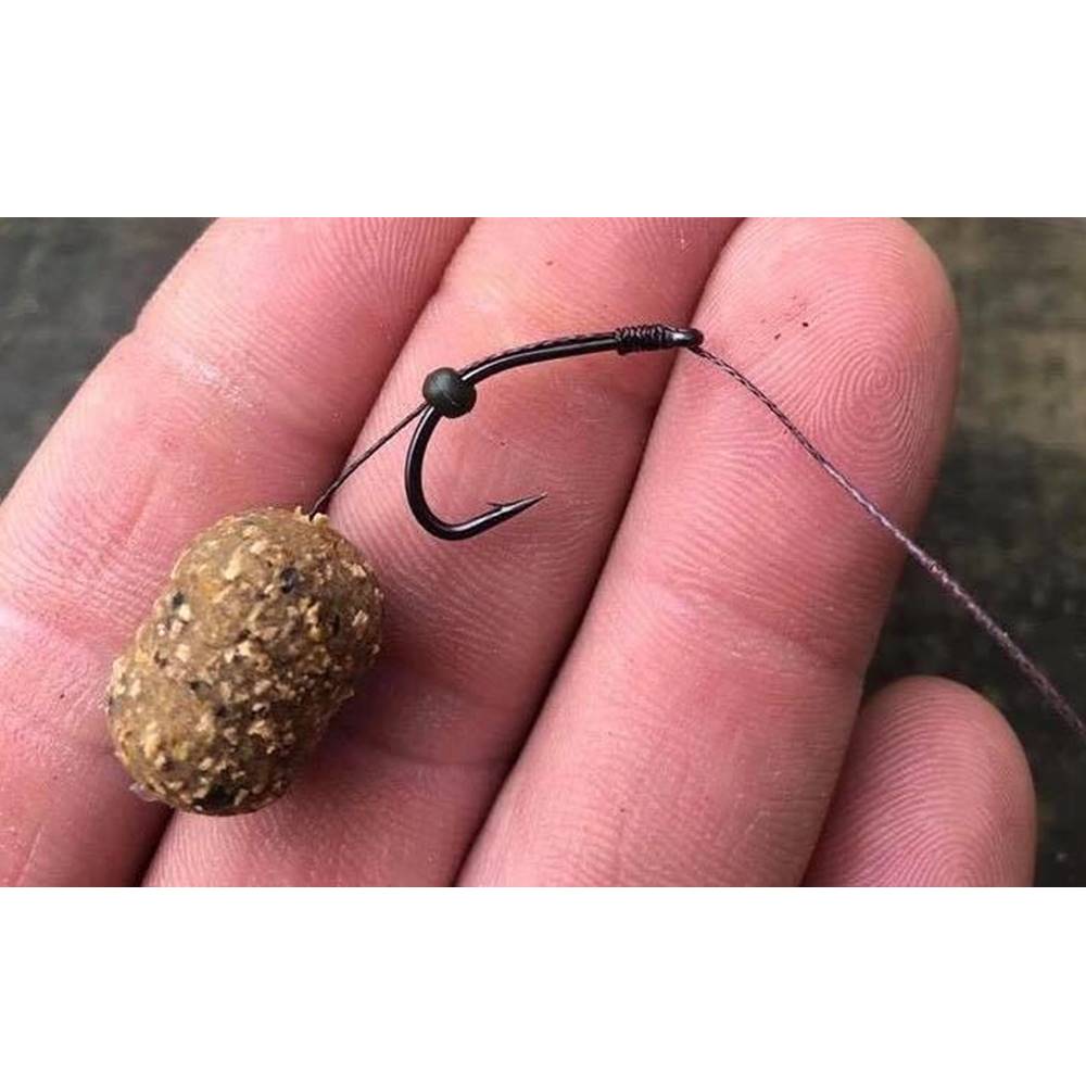 Este anzuelo completo, que está acabado con una capa mate, gris oscuro, tiene una forma de garra que asegura que el anzuelo se clava en el hocico de la carpa después de ser enganchado y se mantiene en su lugar