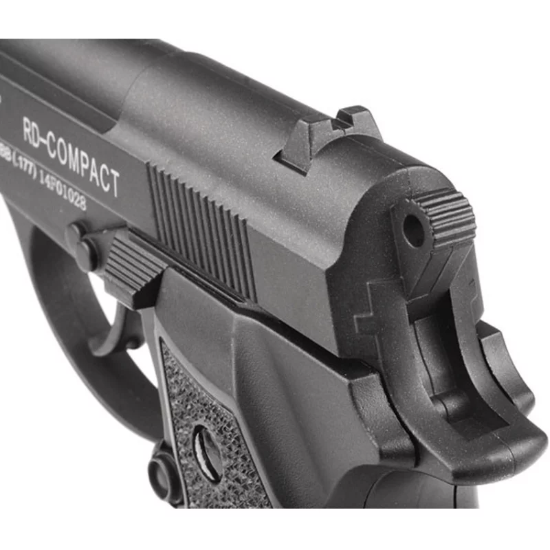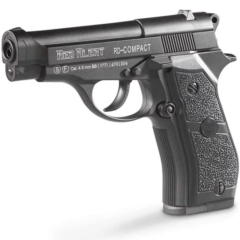 La Gamo Red Alert RD-Compact es una pistola semiautomática de calibre 4.5mm de tamaño compacto y prestaciones altas para el precio tan asequible que tiene. Lo más destacable de este arma de aire comprimido es su velocidad de salida con los bb’s de acero del calibre .177 puesto que es capaz de llegar hasta los 131 m/s.