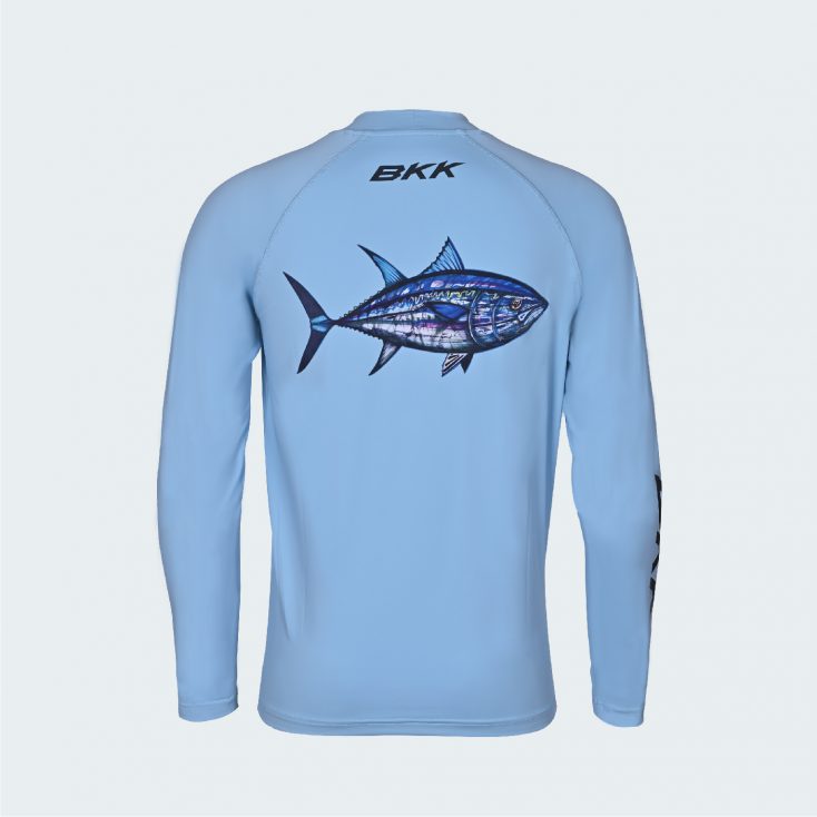 La camiseta de rendimiento de manga larga BKK está desarrollada para los pescadores más ávidos cuando pescan bajo condiciones de luz solar intensa. El tejido ha sido cuidadosamente seleccionado y probado para proporcionar la combinación ideal de suavidad, elasticidad y protección UV UPF50+, lo que permite a los pescadores libertad de movimiento y protección contra los elementos durante largas sesiones de pesca. Viene en tres colores y combinaciones de diseño diferentes, con atún rojo, barramundi y GT.