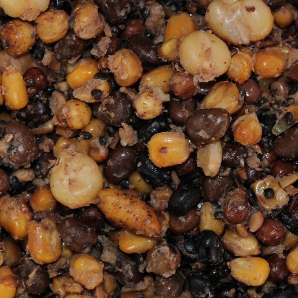Un total de 8 semillas componen nuestra mixtura: maíz, maíz gigante, cañamón, mapple, chufa, judía blanca, judía pinta y sésamo.
