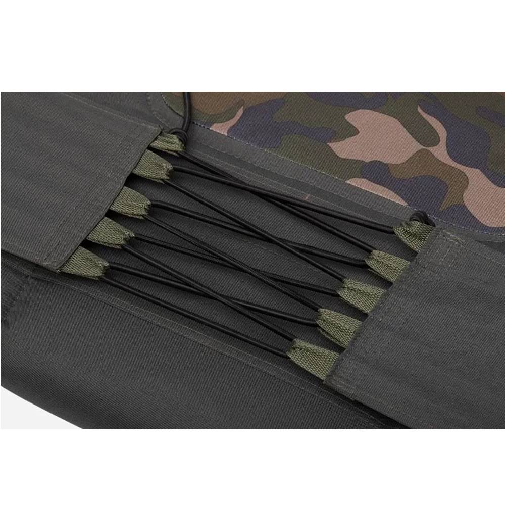 La gama de camas Avenger es elegante y funcional. Diseñado con un marco totalmente plano para lo último en comodidad y ajustado perfectamente al colchón generosamente acolchado a través de elásticos ultra fuertes y resistentes a la intemperie. Con un colchón acolchado esculpido que combina nuestro elegante patrón de camuflaje Avenger con sutiles telas verdes impermeables 600D. El sistema de marco plegable con doble bisagra es súper compacto para facilitar el transporte y permite que la mayoría de los sacos de dormir se mantengan en su posición cuando no se usan. Todas las patas son totalmente ajustables y están equipadas con pies para barro pivotantes.