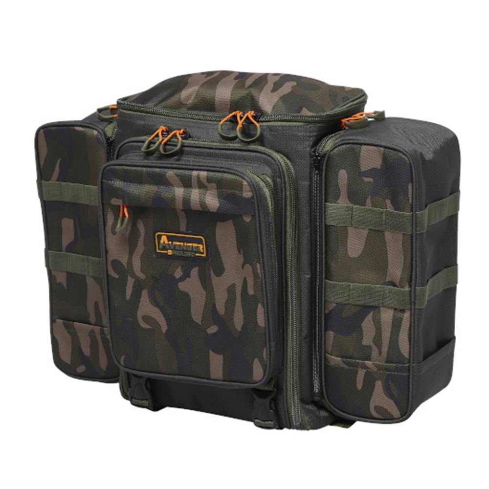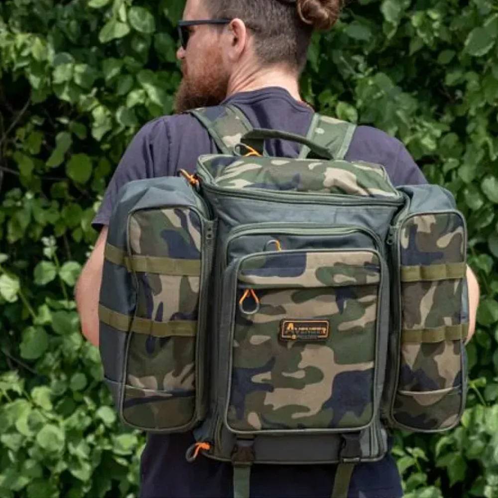 La mochila Avenger se compone de una sección central principal para artículos grandes como equipo de cocina, ropa de dormir, ropa más grande, un compartimento separado con cremallera en la parte superior de la sección central ideal para artículos pequeños, así como dos bolsas de almacenamiento desmontables a cada lado de la sección central de la mochila, ideal para cajas de aparejos y artículos de acceso rápido. La mochila también incluye cuatro paneles de correas de almacenamiento Bank Stick y almacenamiento adicional o correas en la base con una cubierta «Rain & Skid» oculta para que sus artículos estén protegidos de los elementos. Las ventajas añadidas a esta opción de equipaje son su arnés ajustable para una máxima comodidad en los desplazamientos y las cremalleras HD anticorrosivas con tiradores muy visibles para que pueda acceder fácilmente a su bolso, incluso en condiciones de poca luz.