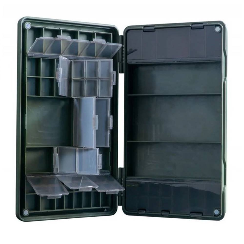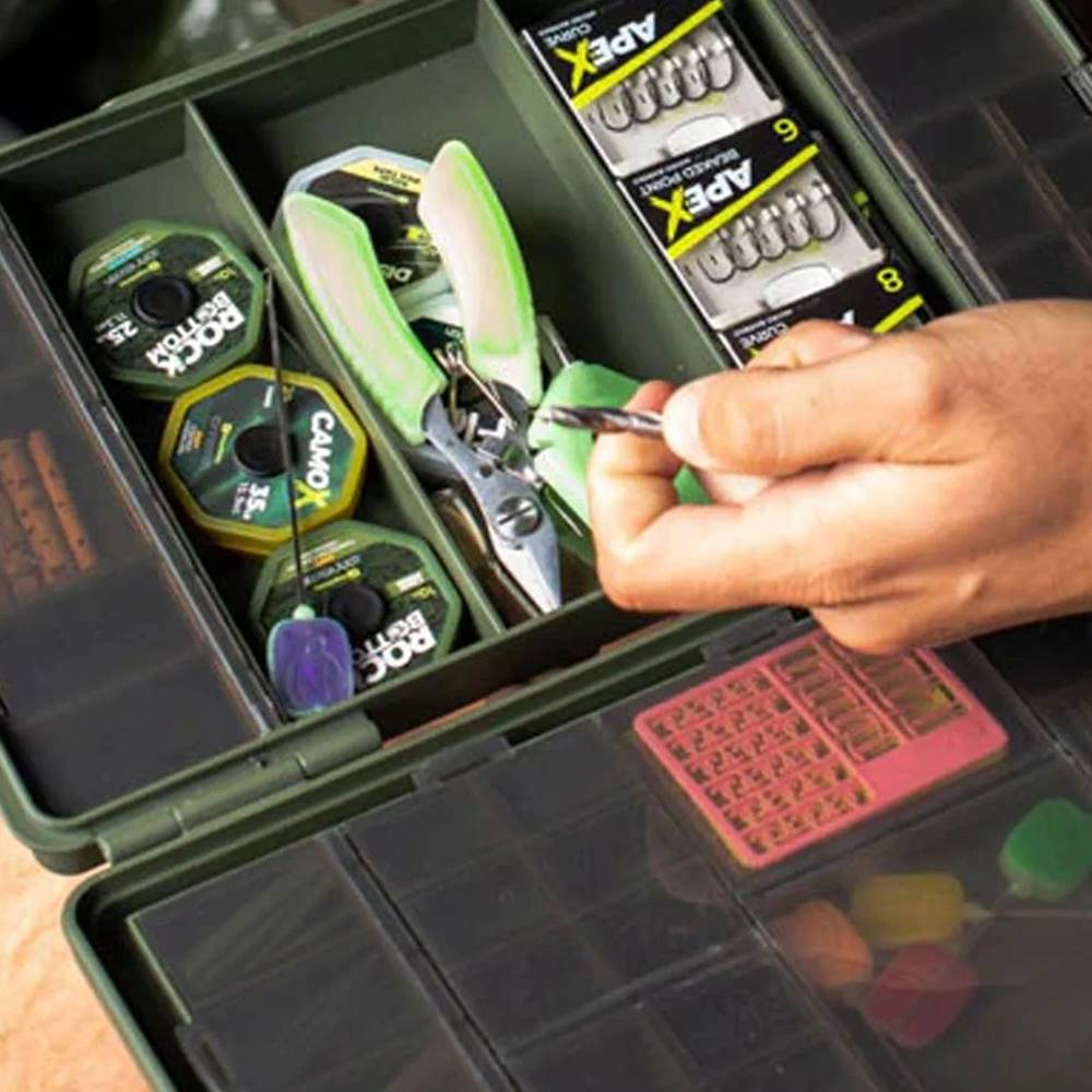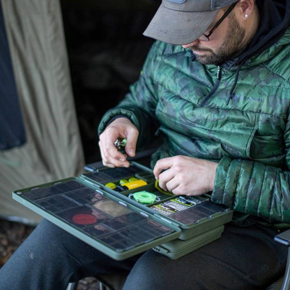Guarde todos sus accesorios enuna sola caja, sin ocupar demasiado espacio, con la caja de accesorios ArmouryLite. Con 57 compartimentos, hay espacio de sobra para guardar todo lo que necesitas, sin dejar de ser lo más ligero y ahorrar espacio. Tanto si se trata de emerillones, antienredos, anzuelos, bajos de línea, PVA, tijeras y otras herramientas de montaje, seguro que encontrará mucho espacio para guardartodo en el Armoury Lite